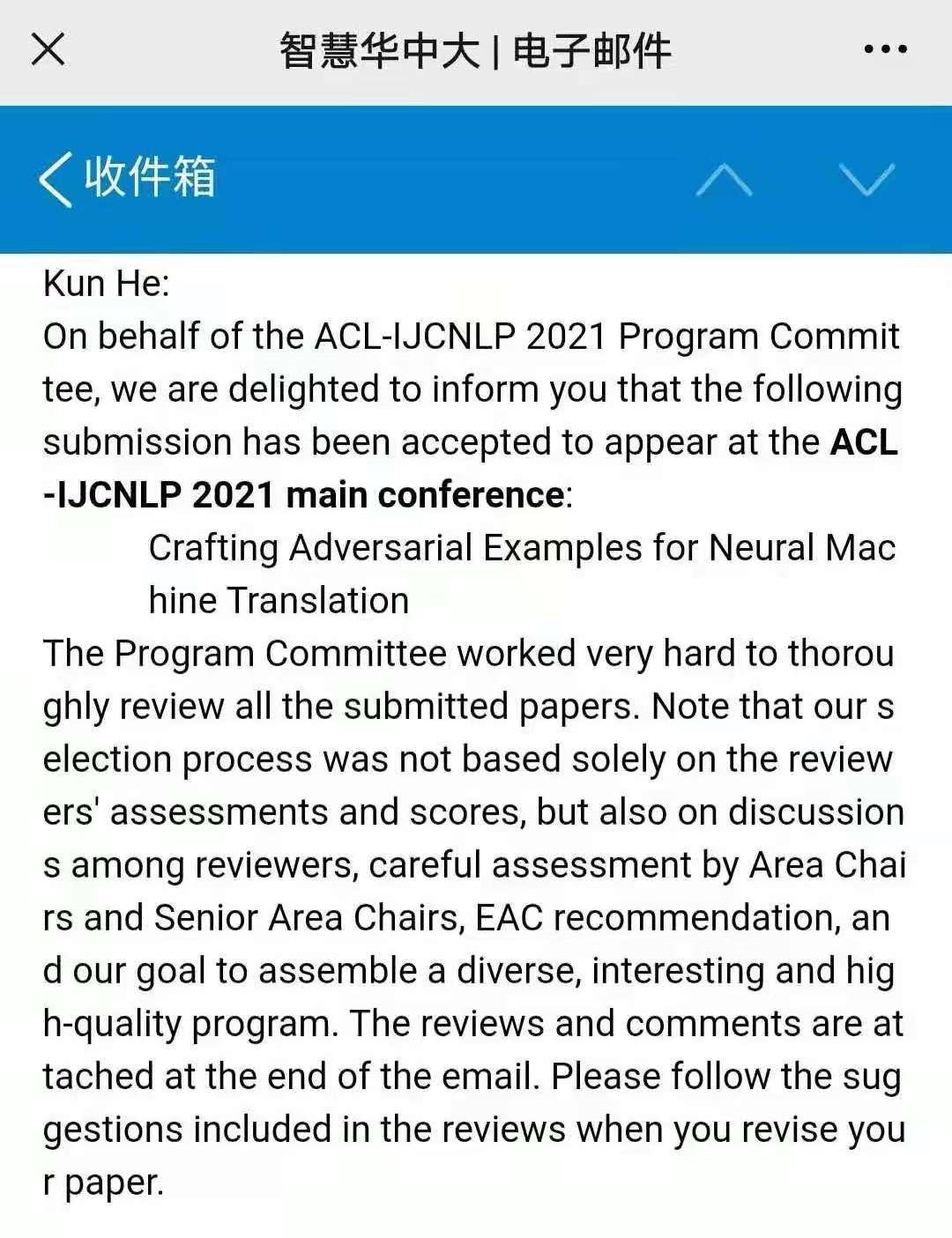 5月6日,公司2018级本科生张浚哲、陈振华为共同第一作者的论文被人工智能计算语言学领域权威国际学术会议The 59th Annual Meeting of the Association for Computational Linguistics(ACL 2021)录用,公司何琨教授为论文通讯作者,这是继2019年何琨团队的论文首次被ACL录用后,再次被ACL录用。