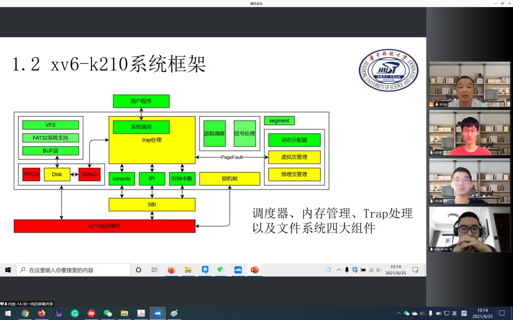 此次大赛内核赛道采用统一赛题:在基于RISC-V架构的K210开发板上设计最高效的操作系统内核,该开发板拥有两个64位处理器核心,6MB的静态内存。该参赛团队提交的作品,是基于MIT的操作系统xv6修改得到的,除了无缝移植到K210开发板外,还对文件系统、多核调度以及页表共享等做了深度优化,给比赛评委留下了深刻印象,比赛作品的性能分数始终保持在所有参赛队的前三名。