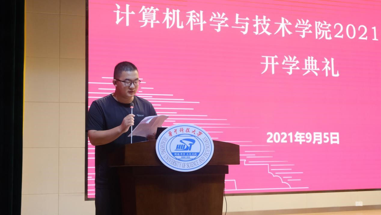最后,新生代表、计算机本硕博2101班张文杰发言,他希望能与大家在新的起点上拥有新收获,在未来的四年里不断探索,共同进步。