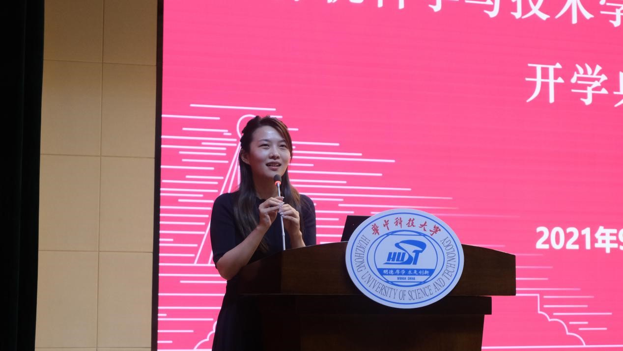 随后,班主任代表肖江上台发言,她寄语广大新生要保持热爱,丰富见闻,以广泛的阅读和求知若渴的心来提升自己,增强独立系统思考的能力,努力发光。