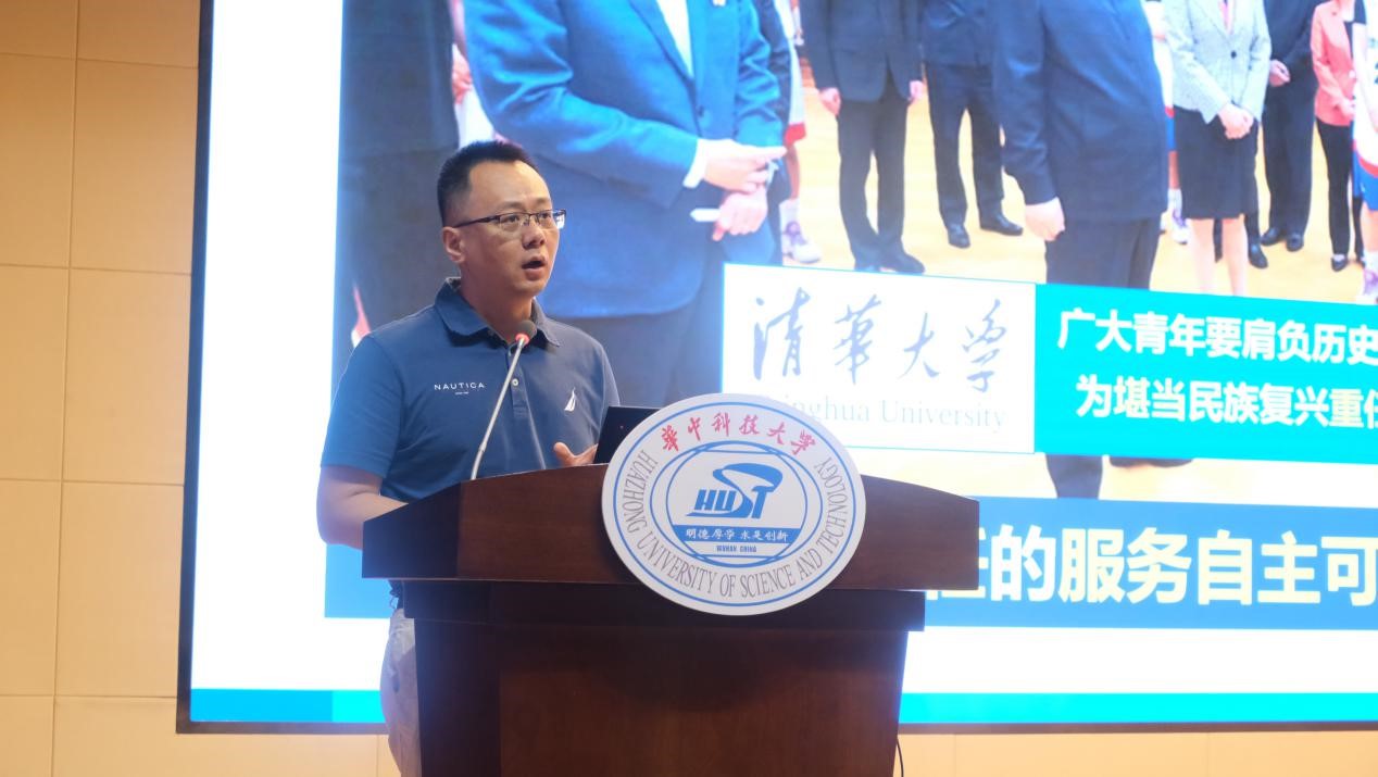 党委书记吴涛以“激扬青春,勇担使命”为题主讲开学第一堂思政课。他首先介绍说,为了更充分的了解大家对大学、老员工生活的期待和憧憬,公司通过学工组发放了大学关键词调查问卷,经过总结“自由、青春、友情、保研等是同学们关心的高频词。