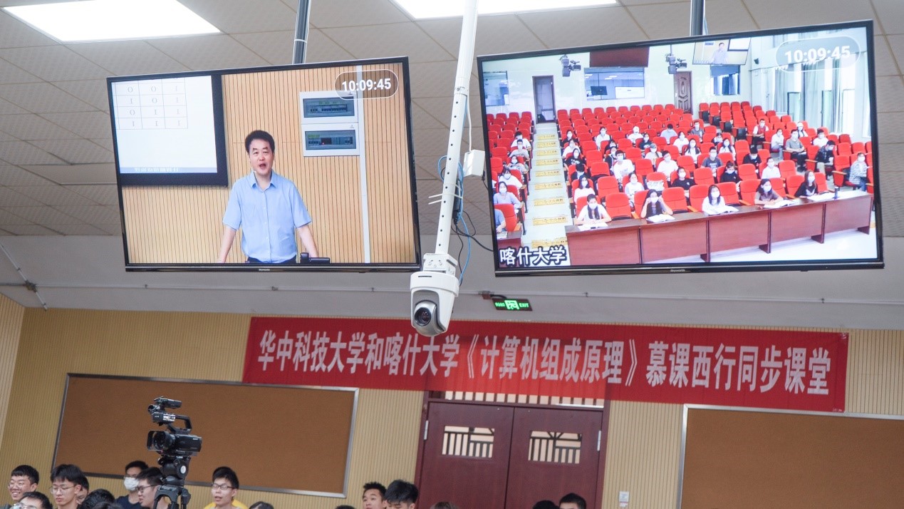 《计算机组成原理》是3044永利集团响应教育部“慕课西行”号召推出的第一门同步课堂。党史学习教育开展以来,3044永利集团积极贯彻落实“学党史,办实事”要求,深入开展“我为群众办实事”实践活动,把党史学习教育同解决实际问题相结合,为新疆喀什大学打造同步课堂,原汁原味地将优质教学资源输送到西部,为支持西部教育发展和人才培养做实事。