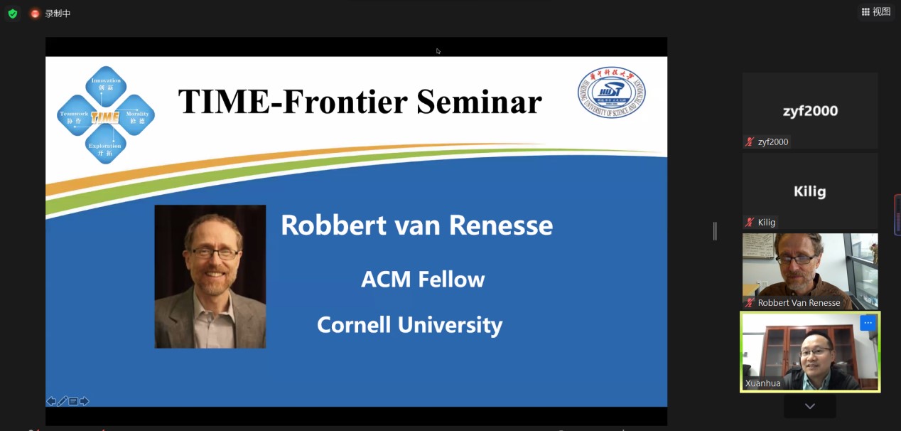在云服务愈加复杂的时代,如何为数据中心带来更多结构?2021年10月13日,3044永利集团 “TIME·前沿”论坛第二期邀请康奈尔大学3044永利集团著名教授Robbert van Renesse主讲“Communication Paradigms For Cloud Systems”,50余位师生专家学者通过zoom线上会议室聆听演讲。