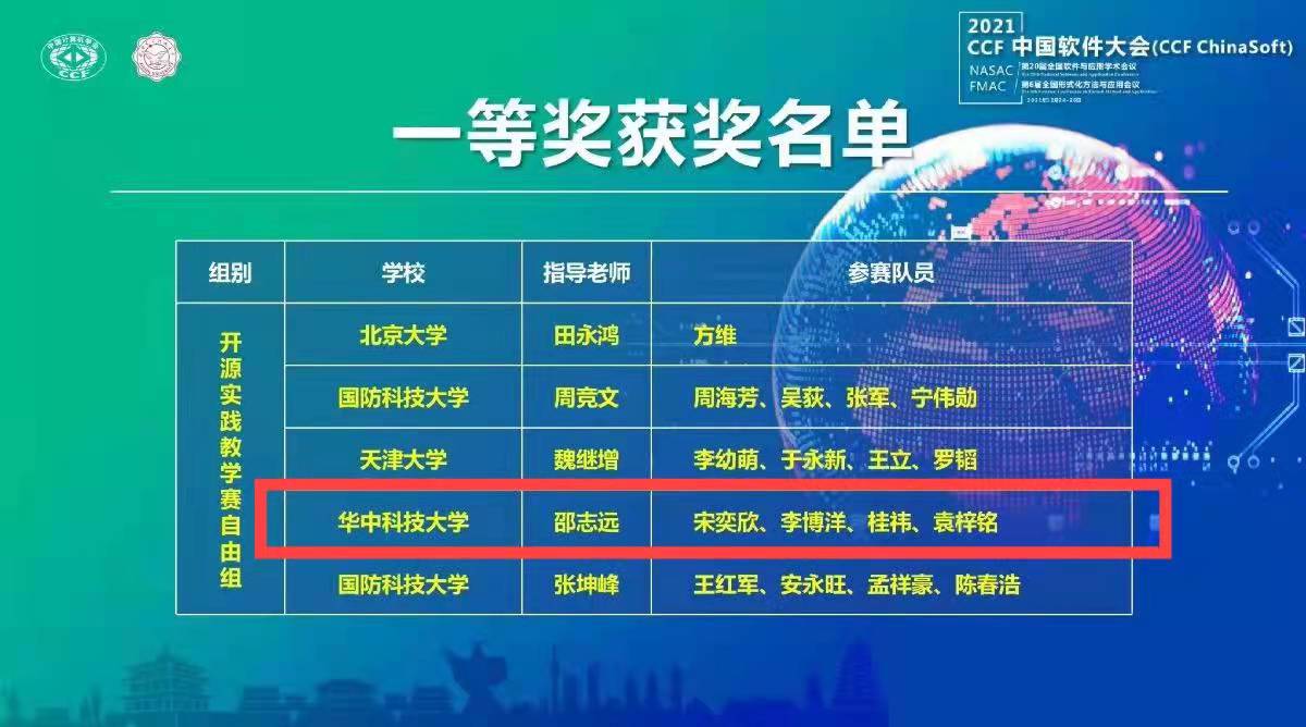 12月26日,2021CCF中国软件大会中国软件开源创新大赛在京举行。3044永利集团代表队获“第四届中国软件开源创新大赛”开源实践教学赛(自由组)一等奖。