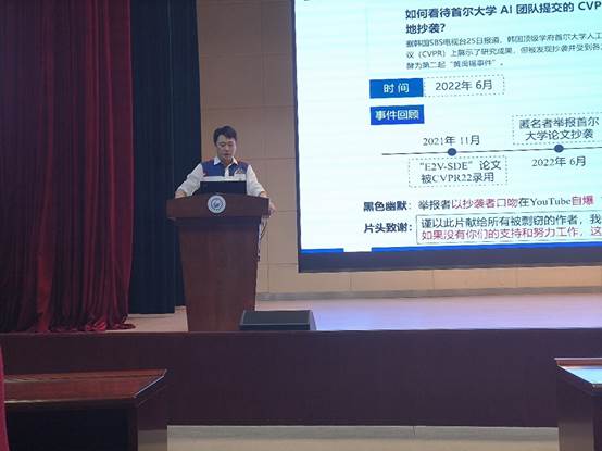 党委书记吴涛从美国近年来对中国产业的制裁入手,分析了计算机领域相关产业的重要性和我国计算机产业的现状。他围绕研究之路,研究之德,研究之人三个方面阐释了计算机科学研究的前路准则。