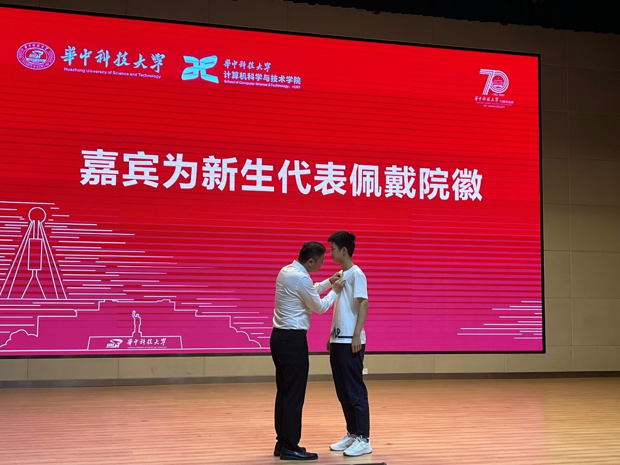 典礼最后,吴涛书记为新生代表佩戴了院徽。