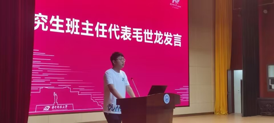 研究生班主任代表毛世龙分享了大学四年员工生活的经历,他建议同学们从兴趣出发,找到合适的道路,要勇于尝试,不必担心结果的好坏。最后他表示会努力做好同学们的纽带,帮助同学们拥有一个快乐充实的老员工活。