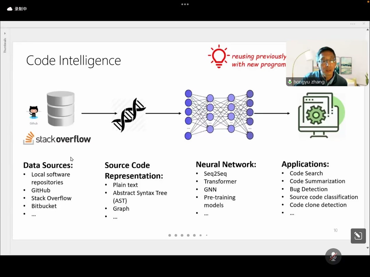最后,张老师阐述了代码智能领域面临的更多挑战,包括代码智能模型的质量、可解释性、在低资源场景下的应用、代码知识产权等等。同时,他鼓励感兴趣的同学们围绕以上诸多挑战,开展深入学习研究,致力解决代码智能领域关键技术挑战。