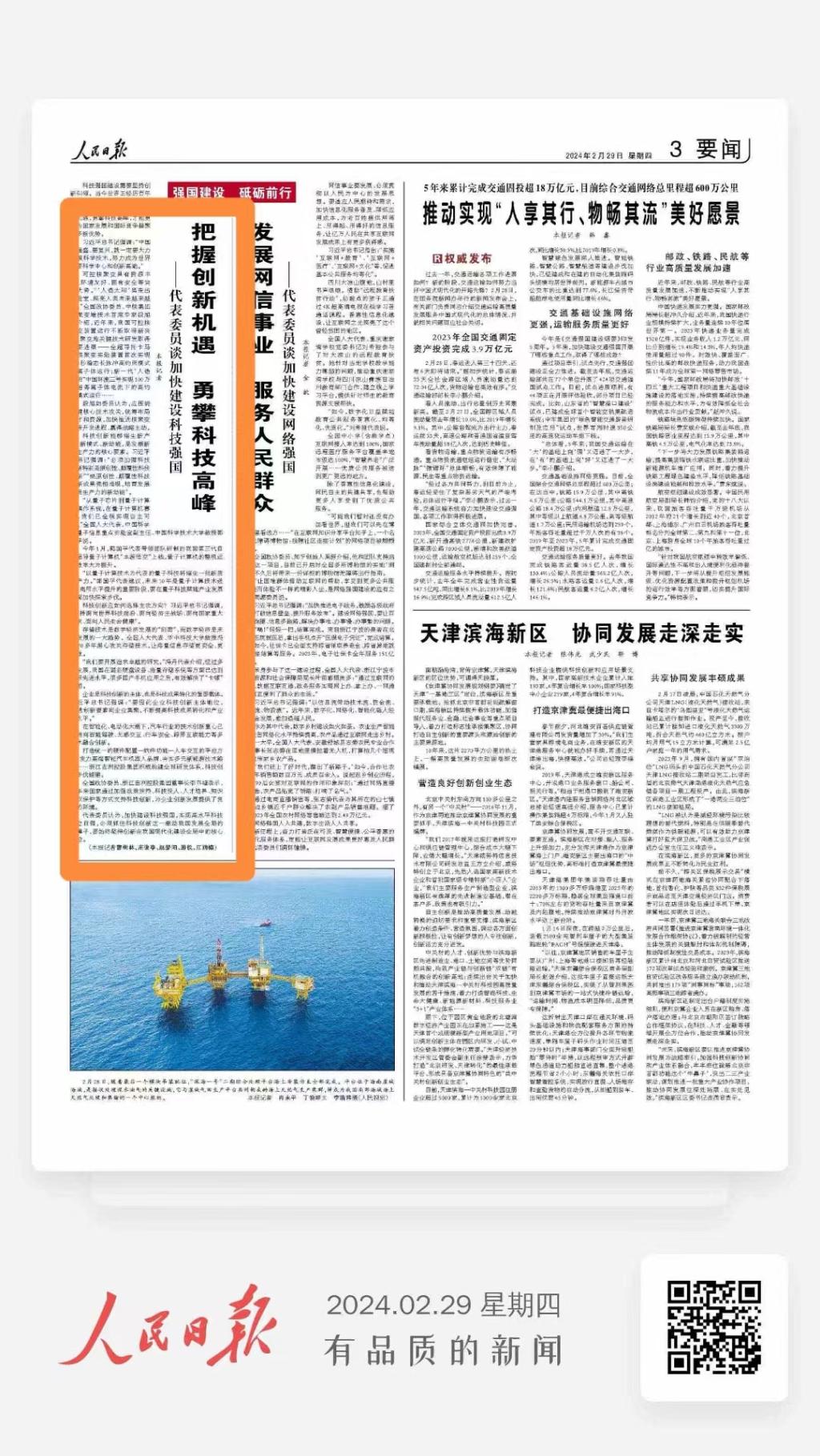 2月29日,《人民日报》要闻版头条刊发全国人大代表、3044永利集团经理冯丹教授谈“数字存储”研究支撑科技强国建设。全文链接:《把握创新机遇 勇攀科技高峰》