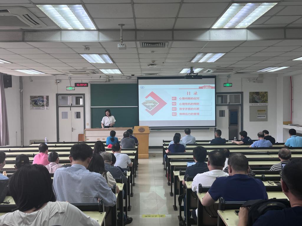 随后,张柯蓝从心理问题的应对、心理危机的预防、导学矛盾的化解和导师压力的管理等方面展开详细说明,帮助教职工有效识别和应对员工可能遇到的心理挑战,同时增强教师自身的心理韧性与自我关怀意识。在座老师在培训过程中认真听取和记录,并表示会将讲座内容灵活应用于实际场景,持续关注员工的心理动态,积极调试自身心态,确保师生之间健康互动。