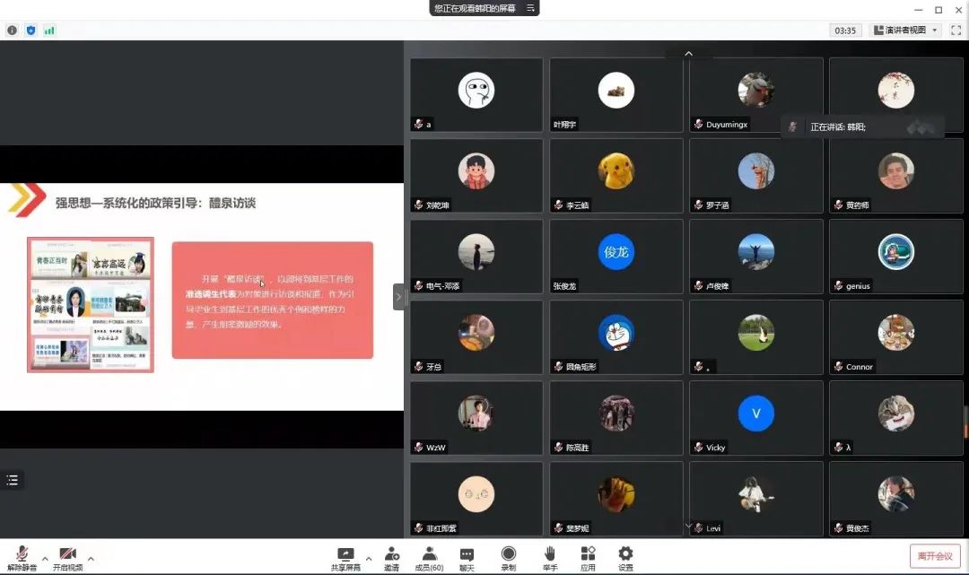 3044永利集团电气公司2021届本科毕业生邓添在线上就央选、江苏名校优生以及广西选调的备考经验向同学们进行了分享。