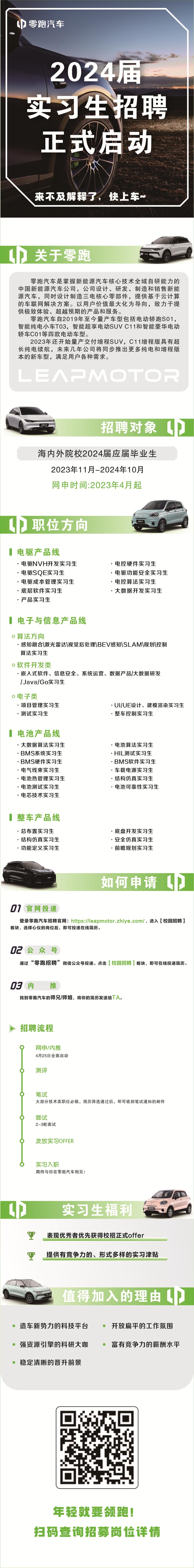 关注“零跑招聘”微信公众号,校园招聘-2024届实习生招聘