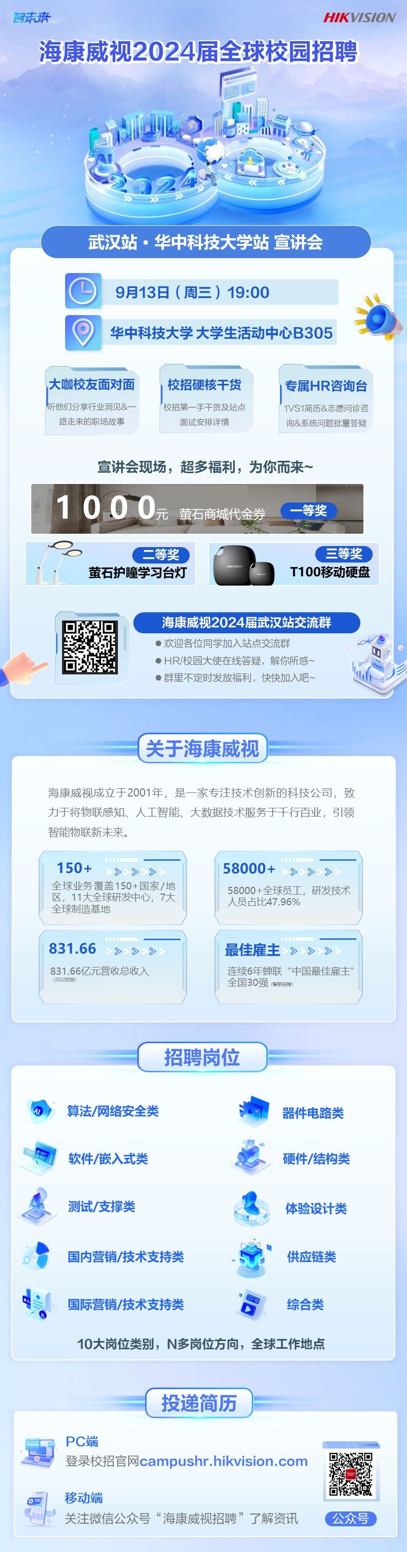 微信端:关注“海康威视招聘”公众号,投递微简历