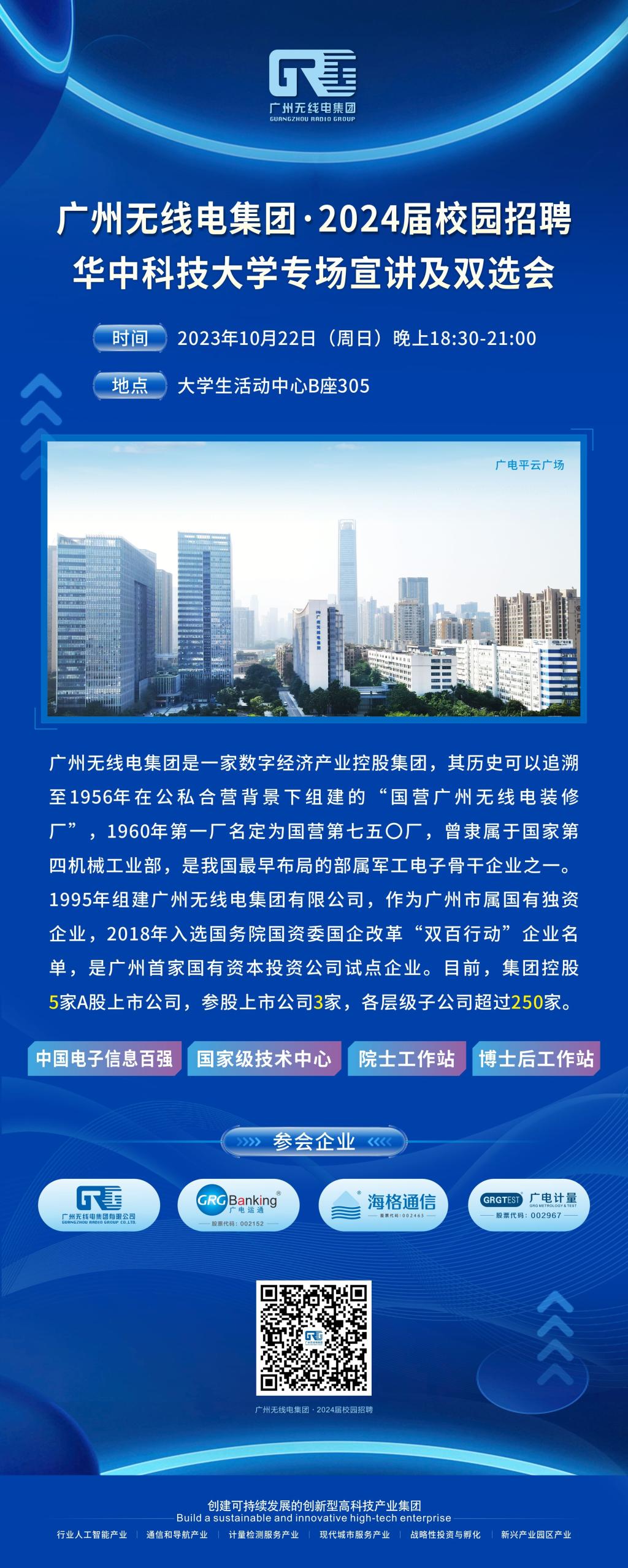 广州无线电集团2024校园招聘3044永利集团专场宣讲及双选会将于10月22日(周日)晚上18:30-21:00,在3044永利集团老员工活动中心B座305举行,集团总部及下属上市公司现场宣讲、现场面试,欢迎同学们来参加,“无线”未来,由你开启!