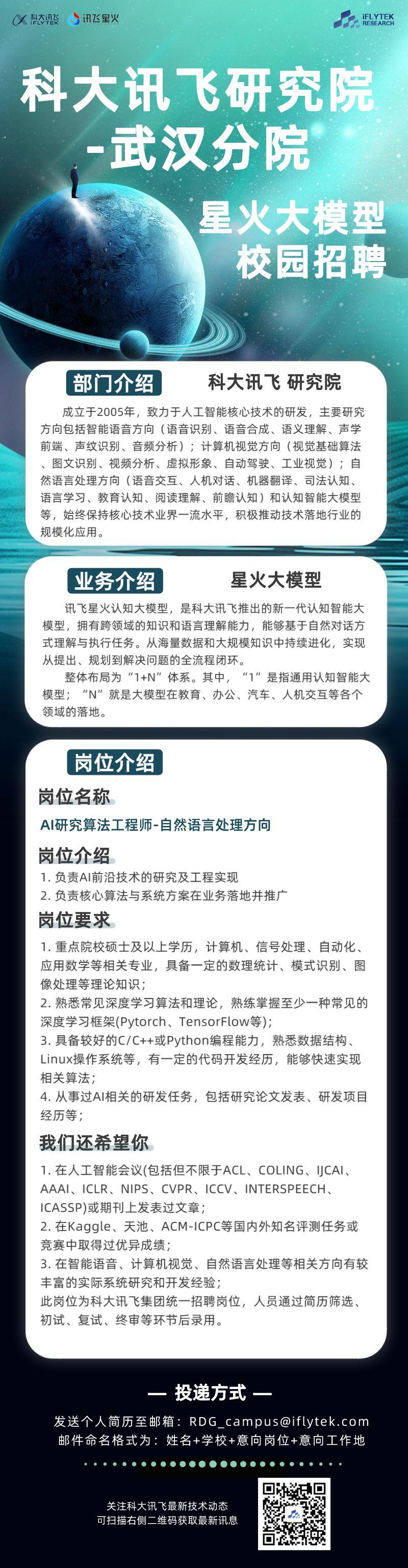 【招聘】科大讯飞研究院武汉分院——星火大模型校园招聘
