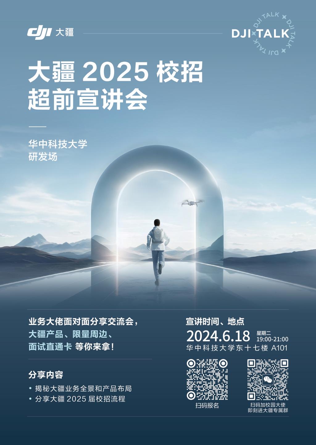 大疆创新-2025-超前宣讲会-3044永利集团(研发场)站将于6月18日(周二)19:00在3044永利集团东十七楼A101举行!