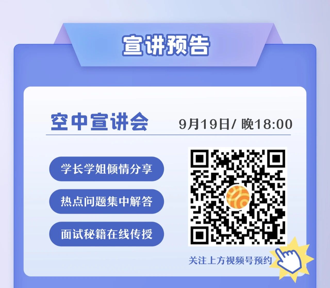 9.19 18:00: 金融科技专场线上空宣,可以通过推文中二维码进行预约;