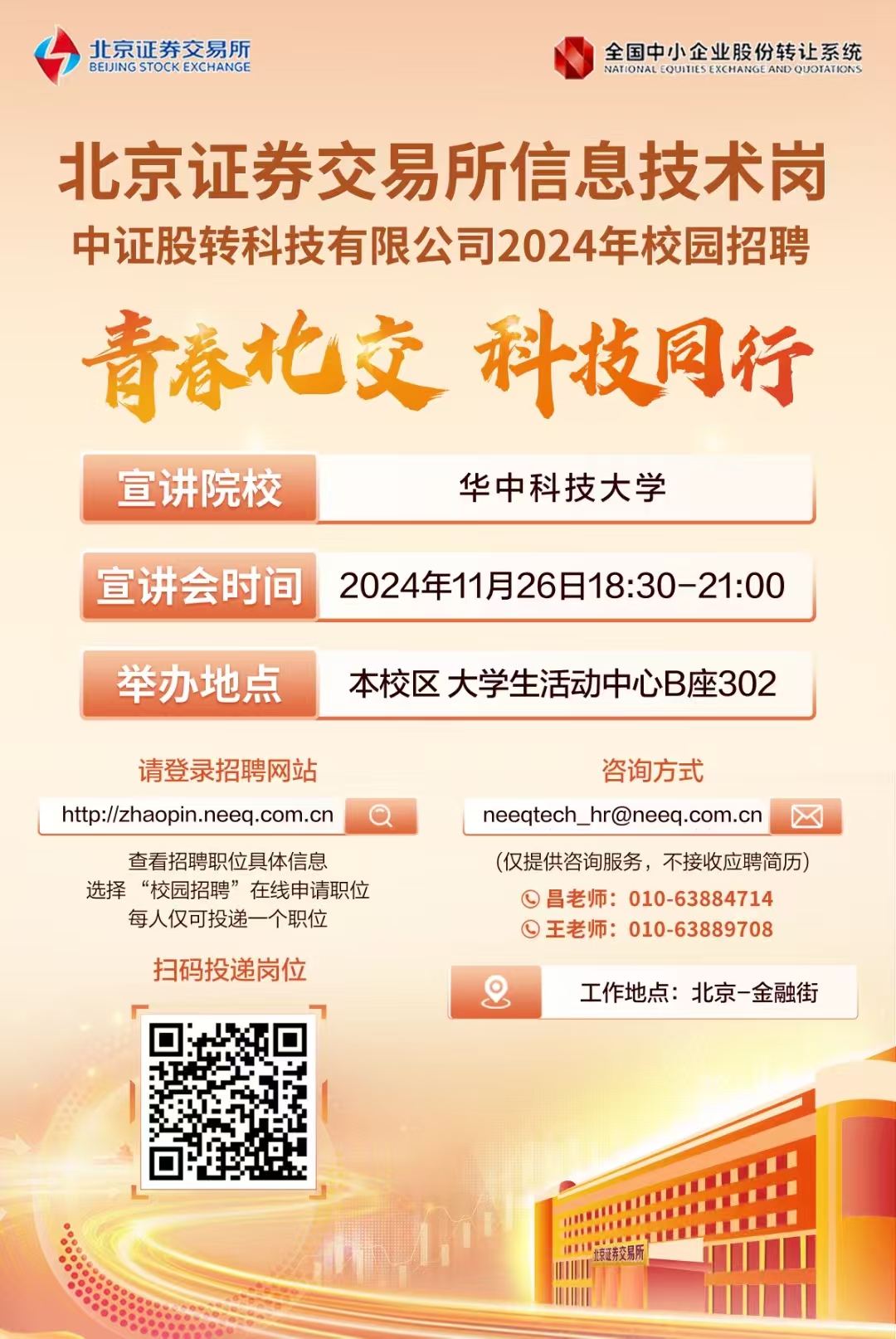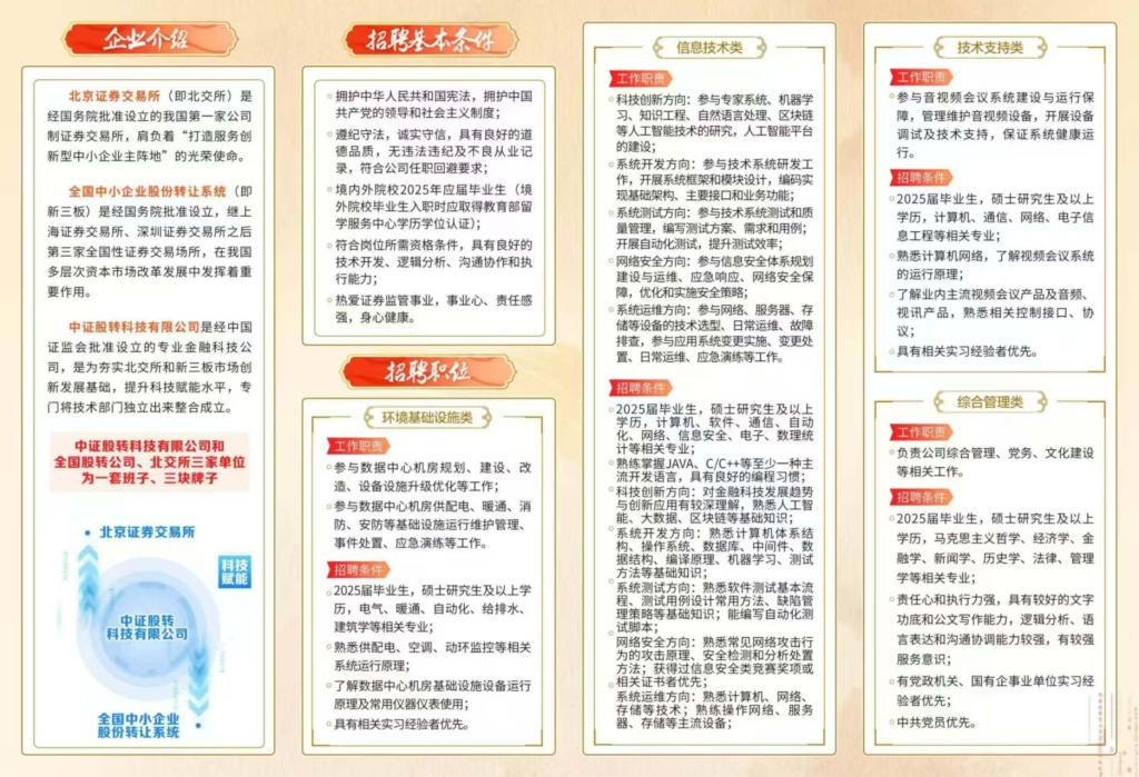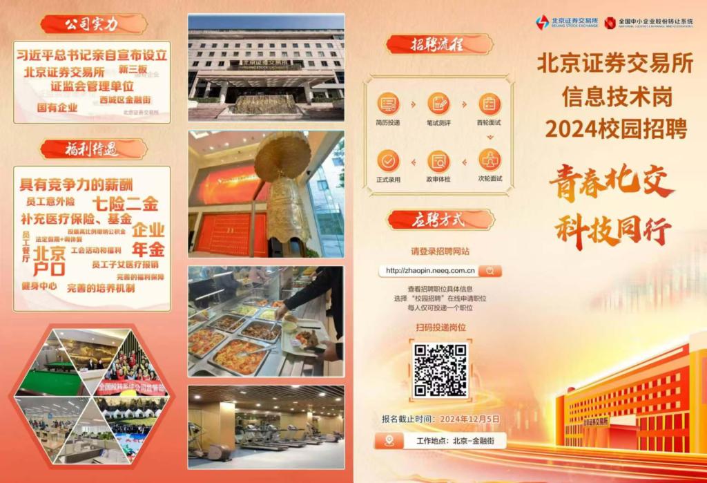 北京证券交易所企业优势:有竞争力的薪酬,七险二金,以往年度均能解决北京户口,职工食堂,健身房