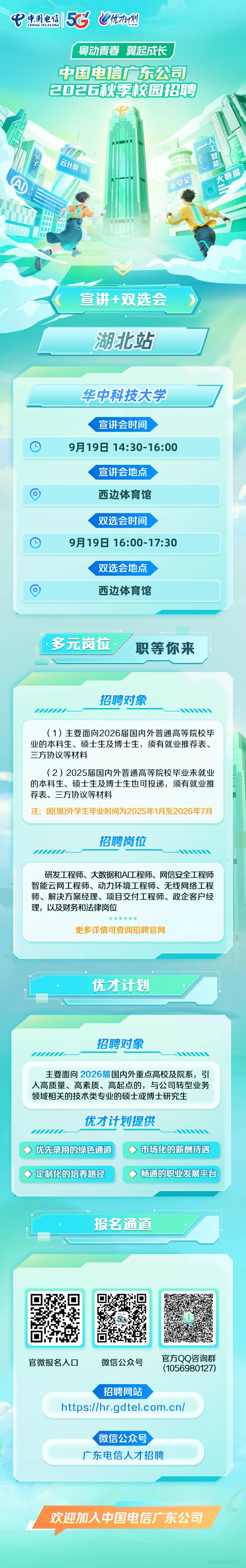 更多招聘信息敬请关注官方公众号:广东电信人才招聘