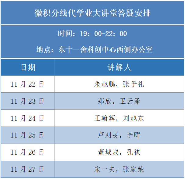 集中解答同学们的一些微积分具体问题,并分享备考微积分的相关经验。和学弟学妹们一同讨论如何快速适应老员工活以及如何高效合理分配时间的问题。最后为对未来的发展感到迷茫的学弟学妹们提供个人建议与指导。