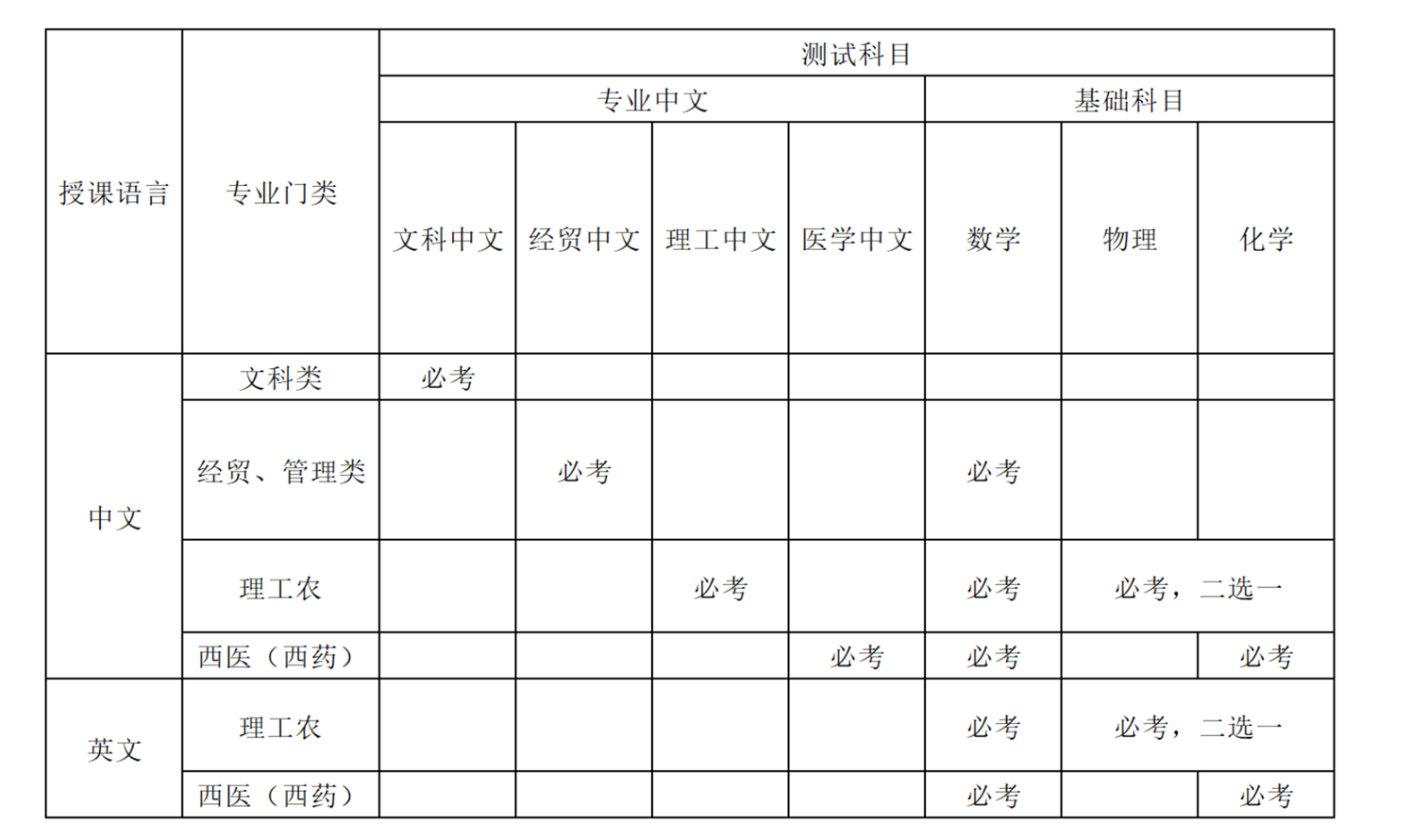 理工医学类:汉语水平考试HSK4级180分或以上;