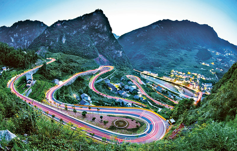 推进乡村振兴,需要进一步提升农村地区交通基础设施能力。近年来,湖北省宜昌市秭归县把“四好农村路”建设与“美丽乡村”、“全域旅游”建设深度融合,有效推动乡村旅游发展,助力乡村振兴。图为2021年8月1日,该县刚扩建完成的芝茅路穿过旅游名村槐树坪的美丽景色。 人民图片 郑坤/摄